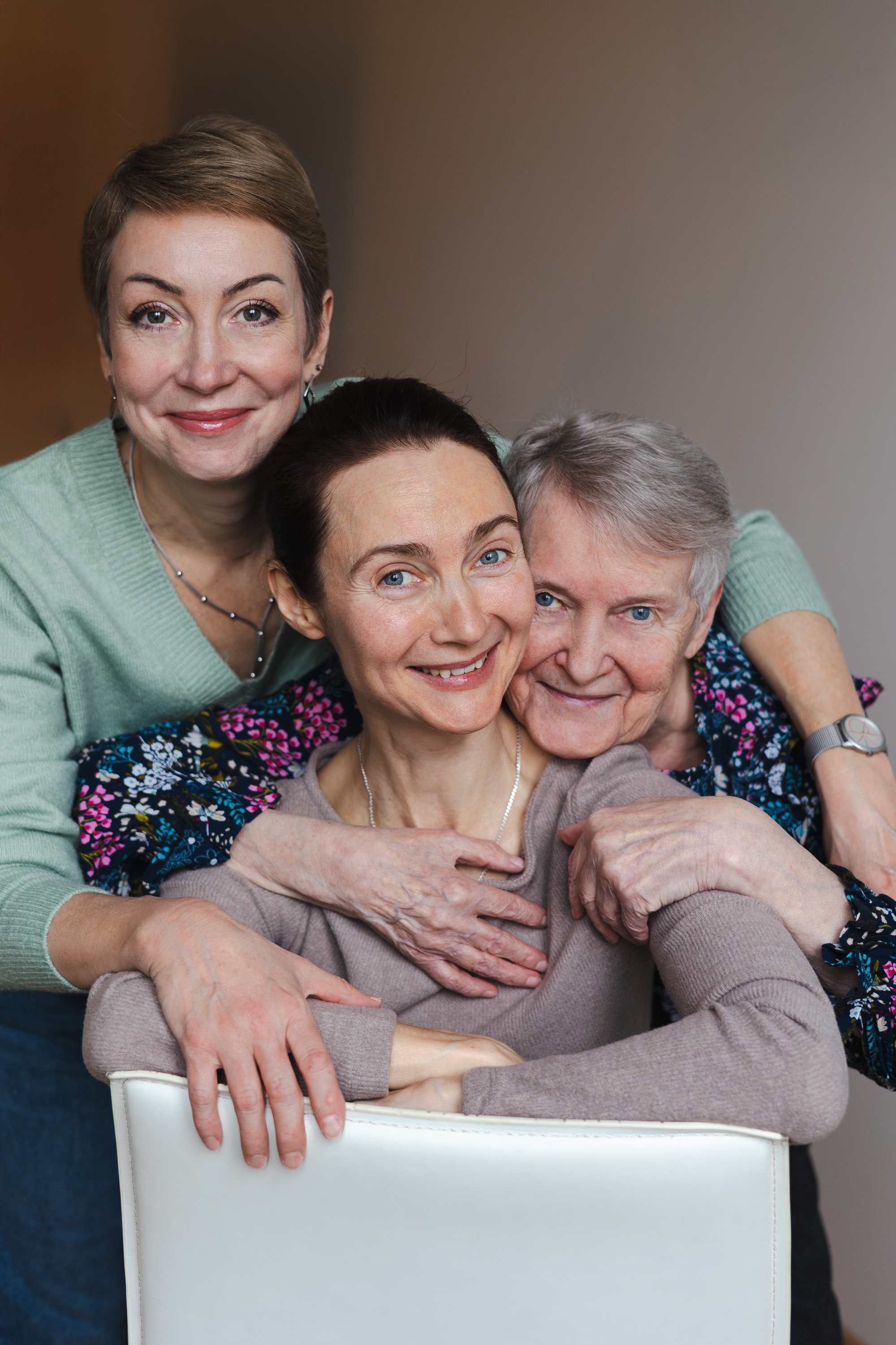 Уютная домашняя фотосессия мамы со взрослыми дочками